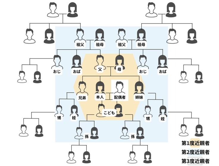 ※第1度近親者(親、こども、兄弟姉妹)は潜在的に50%病的変異を有し、第2度近親者(祖父母、孫、甥姪)では25%病的変異陽性となります。