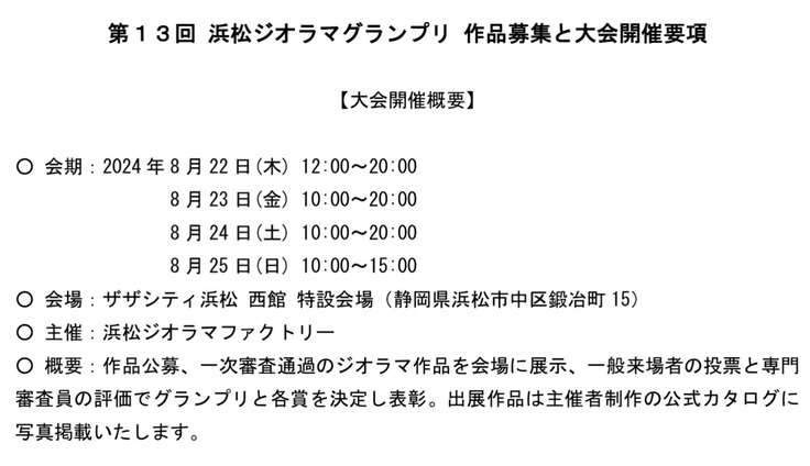 第13回浜松ジオラマグランプリの開催決定 開催概要・応募要項と楽しみ方 ①