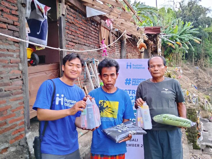 インドネシアに本部があるヒューマン・イニシアティブは、バリ島の関係者や行政とも連絡を取り合い、情報収集を行い、地域行政や他支援関係者と調整をしながら、衛生用品やすぐに食べることができる食料品などの配布を開始しました。これまで、食料品100パッケージ、衛生キット35パッケージを配布しました。支援にあたっては、これまでのインドネシア国内で災害支援の経験のあるスタッフを中心に事業運営を行いました。