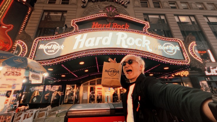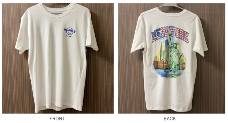 お土産をゲットしたのは、ニューヨークのマンハッタン・ブロードウェイにある超有名なレストラン「Hard Rock CAFE」。著名なミュージシャンが愛用した楽器や衣装などが飾られた店内で、音楽を聴きながら食事も楽しめる場所です!