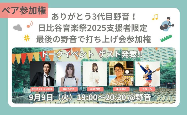 【ペア参加権】日比谷音楽祭2025支援者限定 最後の野音で打ち上げ会参加権
