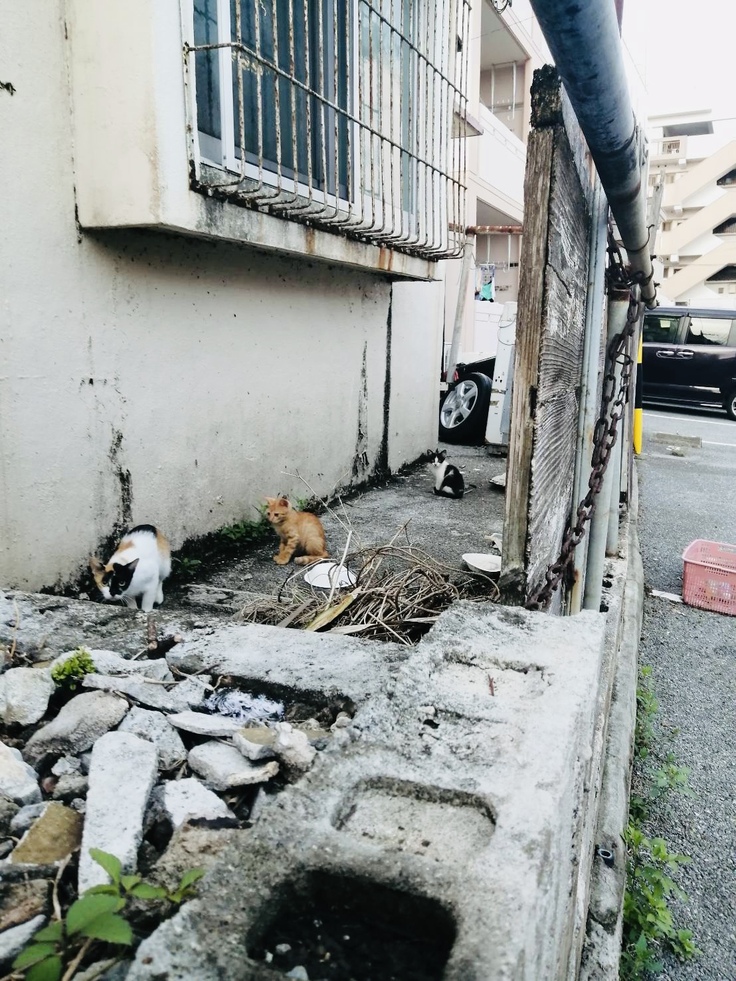 ●県民性もあるのかTNRをする人が少ない。TNRをしている人の多くは本土からの移住者で移住して来て猫の多さに驚いて活動を始めた人が多い。そのような理由から頑張って活動をされているボランティアさんにTNRや餌やりや保護の数が集中してかなりの劣悪な状態になっている。そのため、ボランティアをする人ががどんどん減っているという悪循環がある。ボランティアさんたちは自分の仕事をしながら自己資金と時間を費やして寝るまも惜しみ日々TNRや餌やりや保護に奔走している。