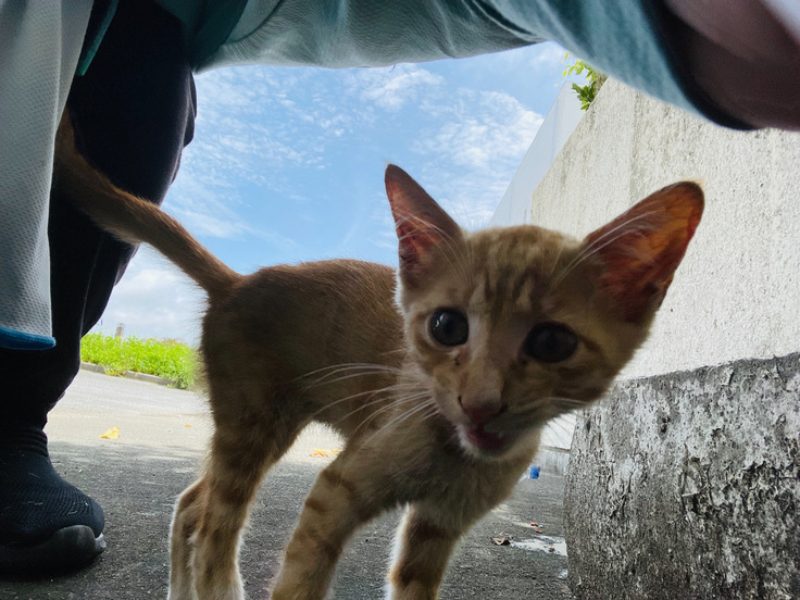 昨日餌やり場にひとりぼっちで置いてけぼりにされちゃった子猫です。