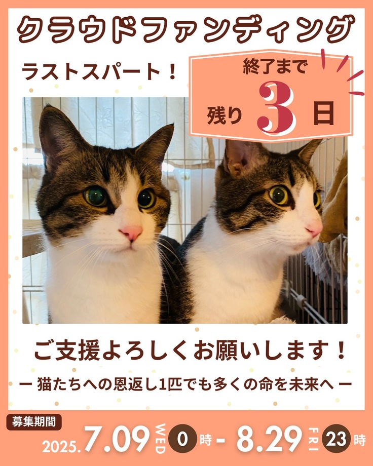 サポーター募集中/保護猫カフェ閉店で残った猫の飼育への援助を!