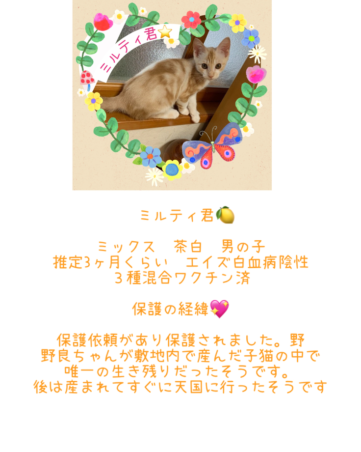 ちゃんになんとか早くずっとのお家を見つけてあげたくて頑張っています。
