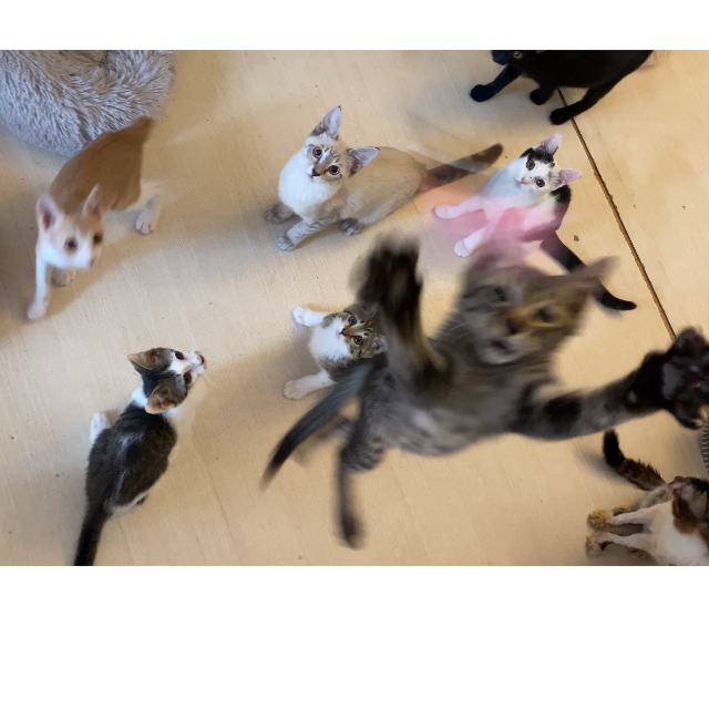 暑くても子猫たちは元気いっぱいで食欲旺盛。