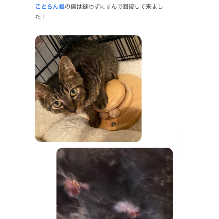 ことらん(傷が深かったが縫わずに抗生剤の投薬でOK)