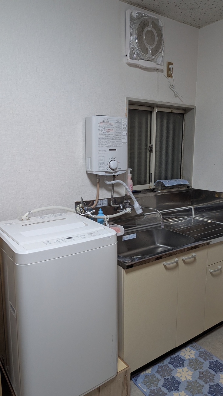 流し台と、瞬間湯沸かし器と、洗濯機です!!