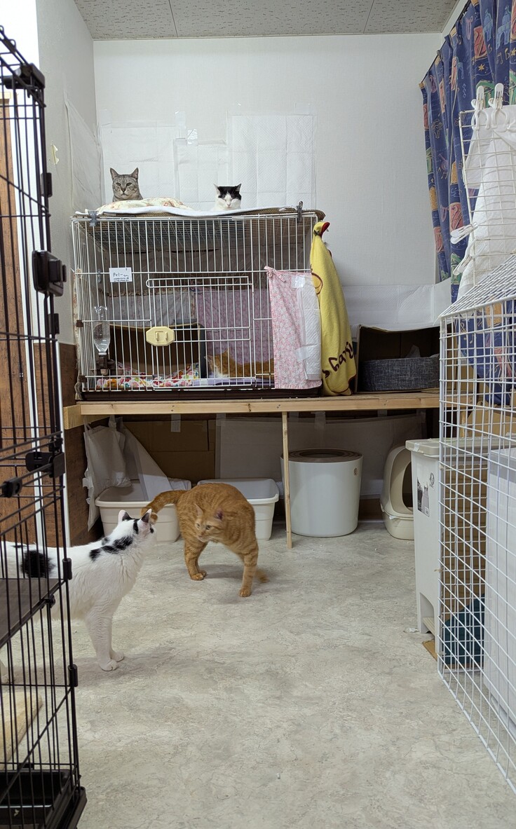 猫達が入れないように仕切りが出来ました!いたずらっ子が多いので、入ってこれないようになって作業がしやすくなりました😊