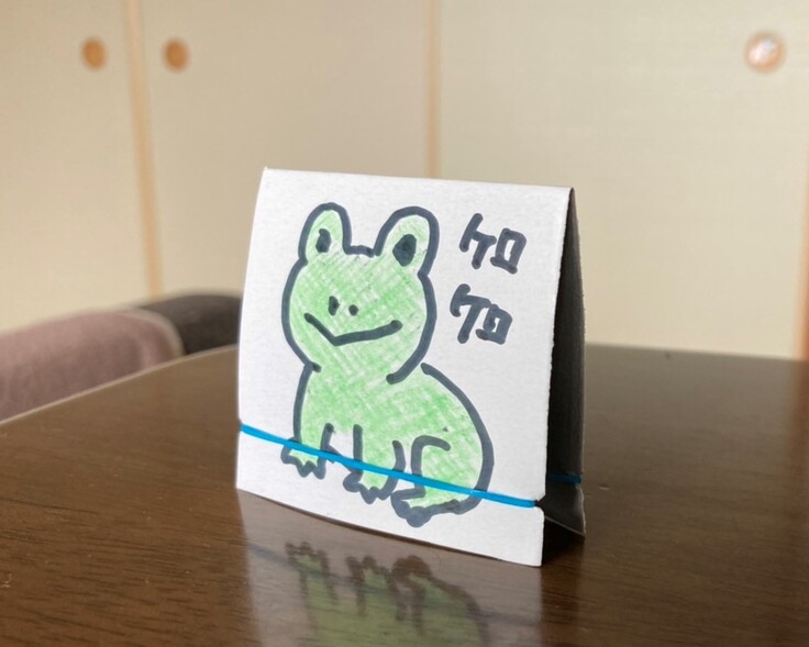 2021年3月25日のまだ暗い早朝に、年明けに見た病院待合での患者さんの光景が浮かび、「フットサポートの高さを半分に折りたためたら開く操作は簡単になるのではないか」と考え、同時に、娘が遊んでいたパッチン カエルが頭に浮かびました。『スマートフットレスト』の素案が生まれた瞬間でした。