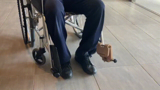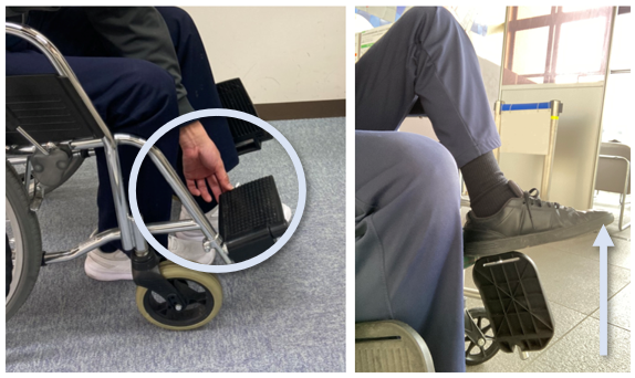 コロナ第三波渦中の2021年のはじめに、ハンドリムとフットサポートとを改良することを課題として研究をはじめました。同じ頃、 病院の待合で、患者さんがフットサポートに足を乗せるのに非常に苦労されている場面に遭遇しました。この方はフットサポートを開く(足を乗せる)際に、フットサポートの先端の高さまで足を上げることができませんでした。