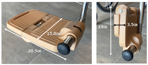 事前に、使用する車いすのフットサポートが差し込み式であること。並びに差し込み部のパイプ内径が16㎜であることをご確認ください。