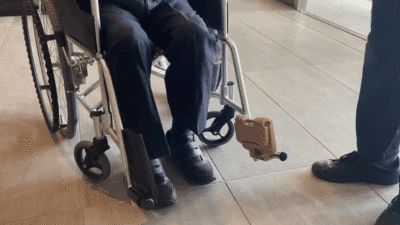 よく考えられたフットサポートで感心させられました。私たちは日常的に車いすご利用者様と接する機会がたくさんあるのですが、スタッフ側は、手でフットサポートを操作することがほとんどです。このアイテムは車いすご利用者様より、我々介護スタッフやご家族様といった、介助する側に、よりニーズがあるように感じます。応援しています。ぜひ、全国の車いすに取り付けて下さい。