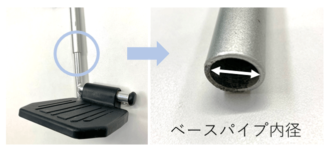 ご購入希望の際は、車いす側のフレームパイプの内径が16㎜であることをご確認ください。内径16㎜以外への取り付けはできません。