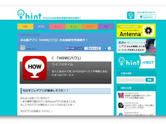 iPhoneアプリニュースhint!に掲載されました!(記事はこちら)