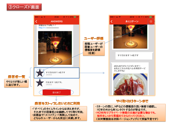 投稿後は、複数の相手と(マルチに)、それぞれ1対1で(クローズドで)やりとり可能