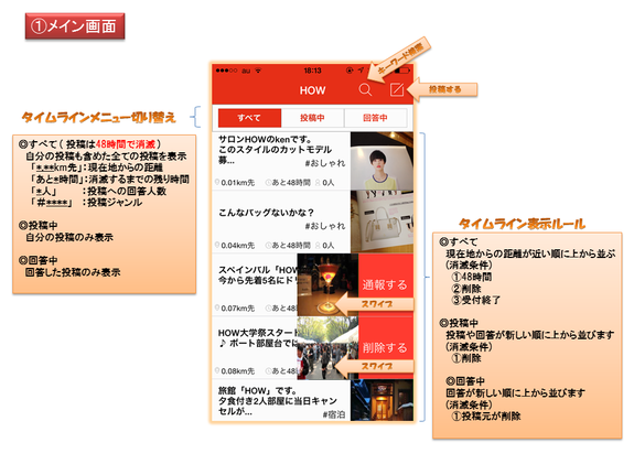 私は業務を通じ、このような問題を解消するには、より【安価】で【柔軟】で【近隣特化】な【新しい広告宣伝スタイル】が必要なことを痛感し、他の広告媒体やSNSサービスを「補完」するシステムを開発しました。それこそが今回のプロジェクトで拡散を目指すSNSアプリ「HOW」です。