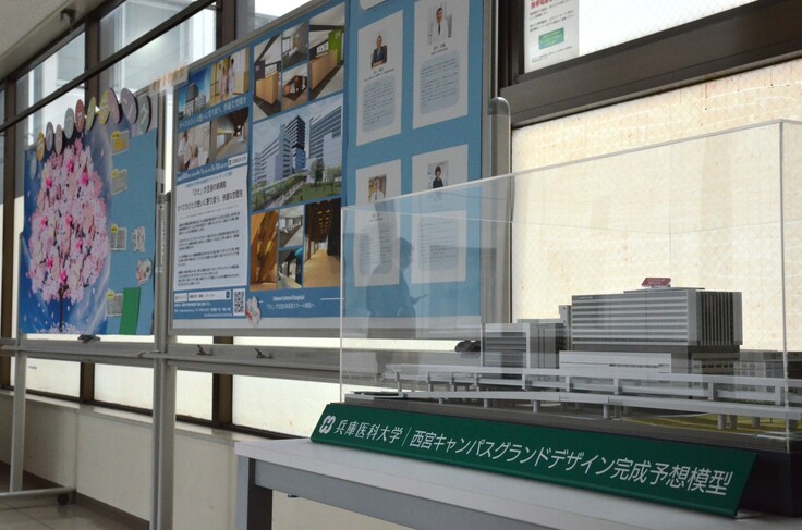 8号館3階渡り廊下のブースには新病院完成予想模型を設置しています。
