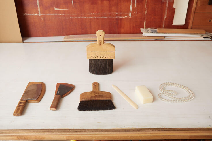 これらのプロセスは展覧会では見えづらい部分ですが、画像と文章で記録することで作品が表具されていく過程を可視化して残し、貴重な技術を未来へと紡いでいきたいと考えております。