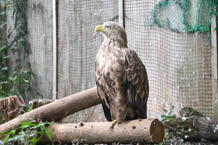 去年厚岸で収容された、左翼の中央付近で開放骨折していたオジロワシ。何度も麻酔下での処置を繰り返し、ケージ内での入院生活を長期間行っていた。そしてこの度、ようやく外の広いケージに移ることができた。頑張ったね!