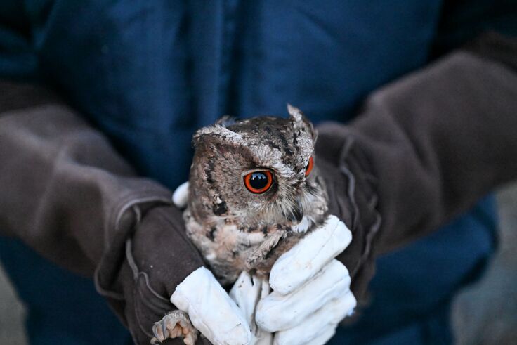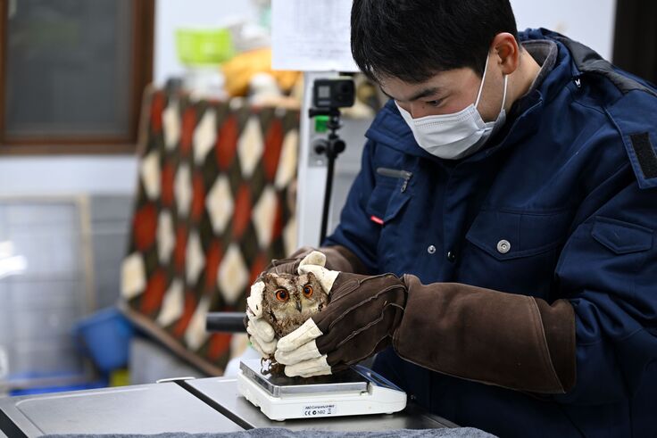 窓ガラスに衝突し、脳症状や眼球内出血がみられていたオオコノハズク。