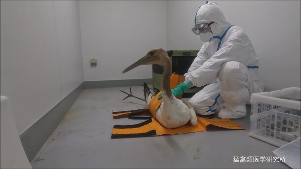高病原性鳥インフルエンザに感染していることが研究所のPCRで判明し(簡易検査陰性)、環境省の了解のもとセンターの陰圧隔離室で抗ウイルス薬による治療を続けてきたタンチョウ。感染性ウイルスが排泄されなくなり隔離解除できていたが、残念ながら昨日死亡した。次に繋がる沢山の知見をありがとう!