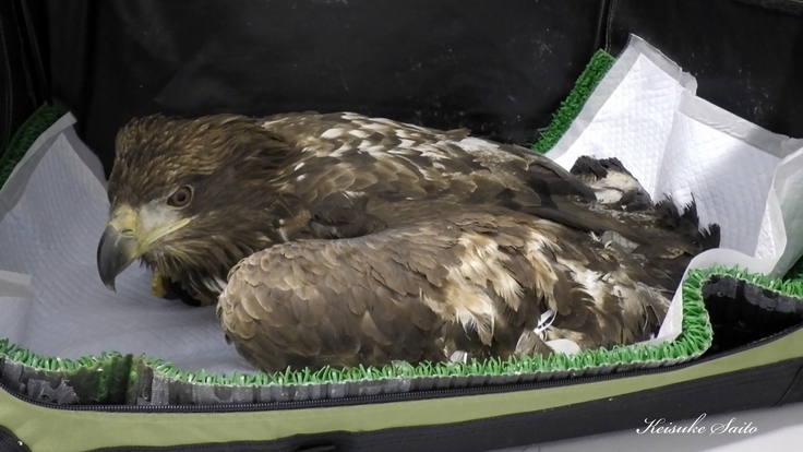 今日はオオワシ1羽とオジロワシ1羽が緊急収容された。翼の骨が折れたオオワシは交通事故に遭ったと思われ、釧路に着いた時点で残念ながら力尽きていた。別の場所の雪上で発見された若いオジロワシも起立することができないほど衰弱していた。さらにセンターでは終生飼育しているオオワシ同士が掴み合いのケンカ。。同居している者との相性が悪かったり、喧嘩っ早い者がいたり。。すぐに引き離し、キレやすい問題ワシはしばし独房(単独飼育ケージ)に入ってもらい、反省を促すことにした。新年早々、猛禽保全の最前線は実に慌ただしい!