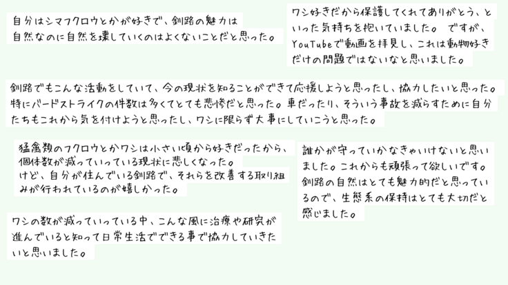 北海道釧路北陽高校 生徒の皆さまより
