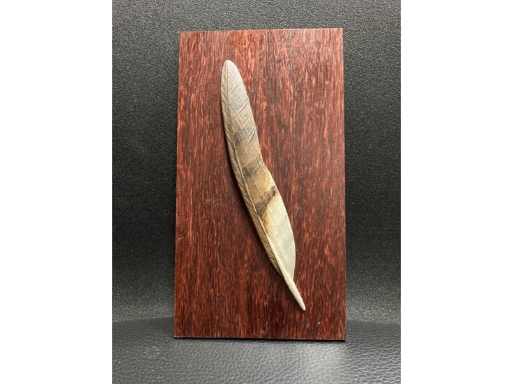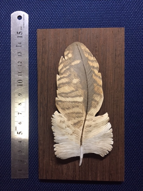木彫りで表現されるシマフクロウの中雨覆部分の羽です。