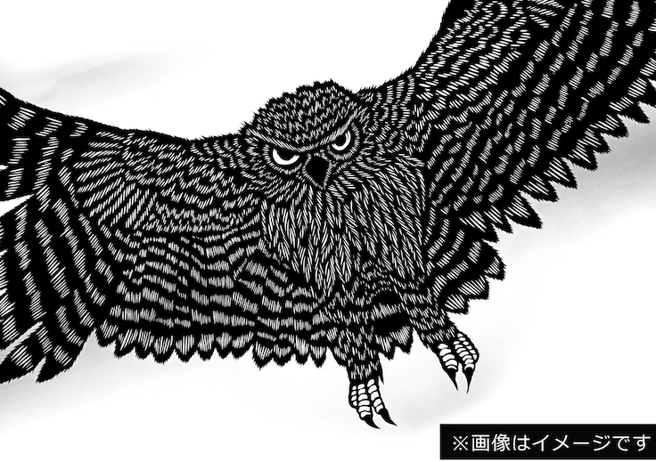 深い夜の中、シマフクロウが大きな羽を広げている様子をデザインしました!