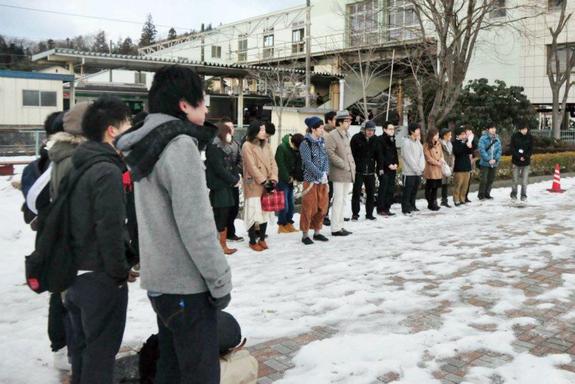 2月8日に行われたタスキリレー出発式の様子です。雪が積もっている中でも、全国を巻き込んでくる、これからの本番のためのとても熱い宣誓をしました。