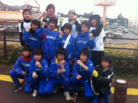当日、一緒に走ってくれた子供たちともラバーバンドをつけて記念写真を取りました。