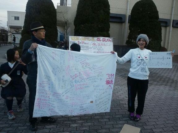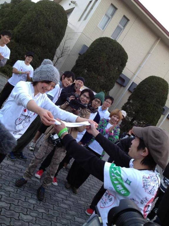 佐賀でのたすきリレーの後、次の県【長崎】へ移動するJASP福島スタッフにたすきを渡しました。