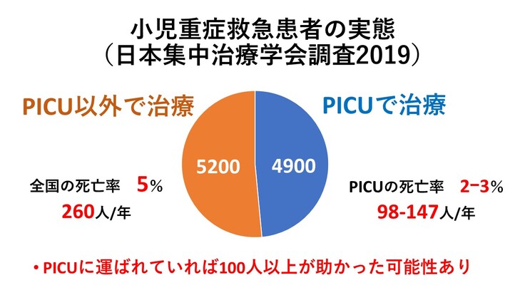 そのうち、約半分の5200人の子どもがPICU以外の施設で治療を受けています
