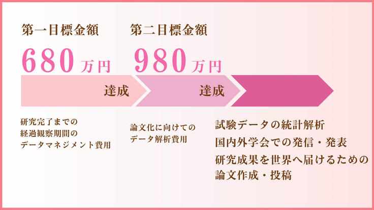 これまではAMED(国立研究開発法人日本医療研究開発機構)から公的な研究費を経て進めてまいりましたが、本研究の全てのデータが出揃うまでの残り2年間の資金を確保できておりません。