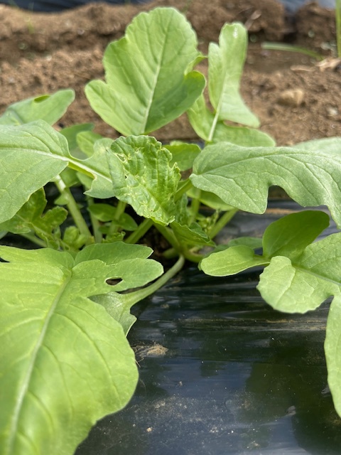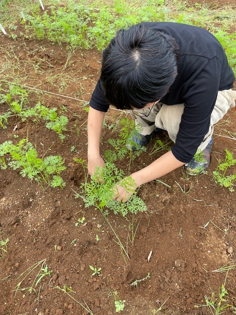 大根もすくすく育ってきて、只今 間引き中です。間引きは、どっちの大根を抜くか、可哀そうでなかなか難しいです・・。
