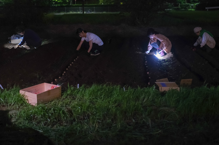 そこで、スタッフ皆でライト片手に植えたじゃがいも。