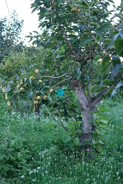 きれいだった柿畑の下のにらの花が終わりに近づきました。