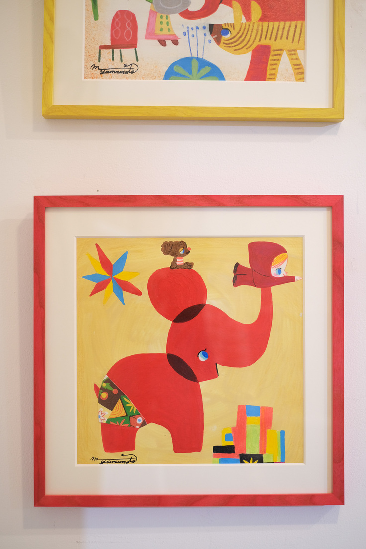 フレーベル館キンダーブックに掲載した挿絵を、フランスのアンティークの額に入れて追加で送ってくださいました!裏側にはキャビンさんのサインが。