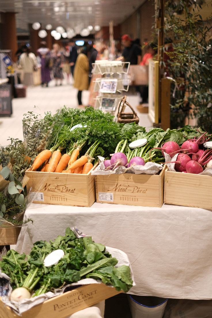 朝採りのかぶやにんじん、大根、ゆずなど。