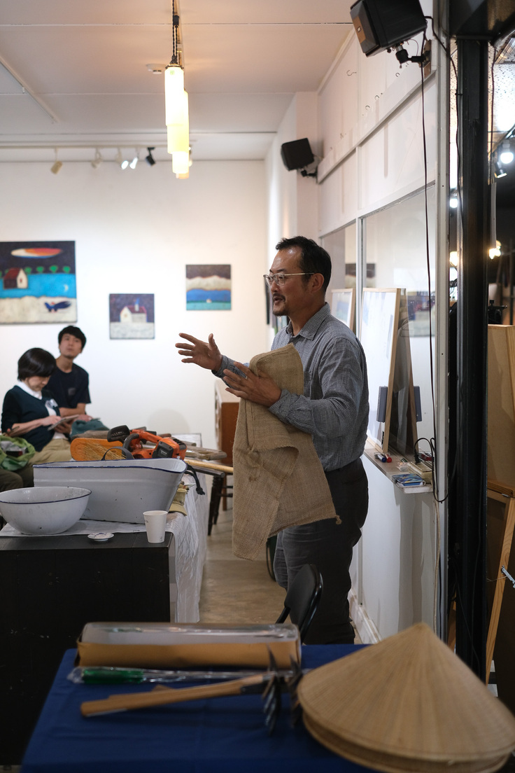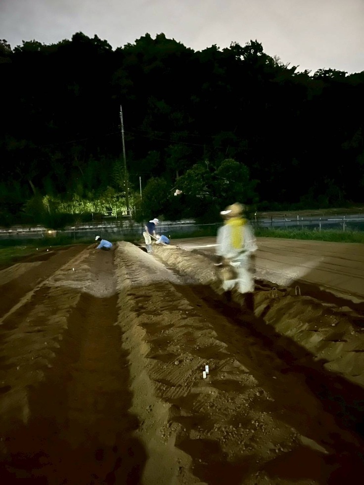 (ギャラリー営業後のナイター農業。ギャラリー大坪さんは夕方つなぎに変身します)