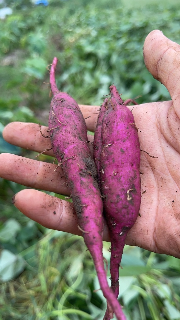 (少し前、さつまいもが実ってきたのを確認。いまはもっと大きく育ってきています!)