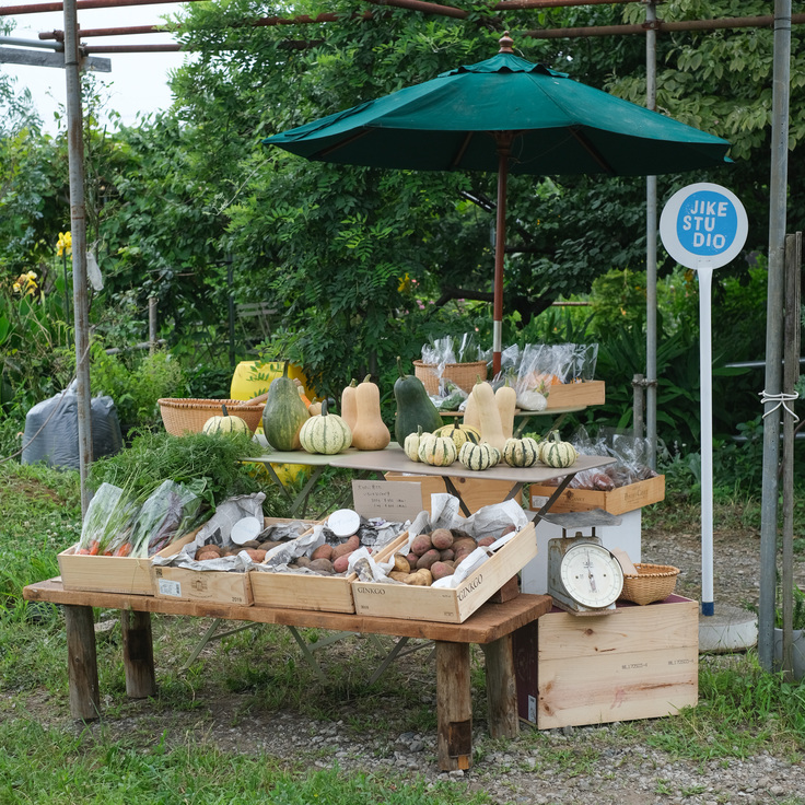 JIKE STUDIOの野菜販売コーナーでの直売や、カフェでランチやデザートに変身している野菜や果物たちを、ぜひ召し上がりにいらしてください。