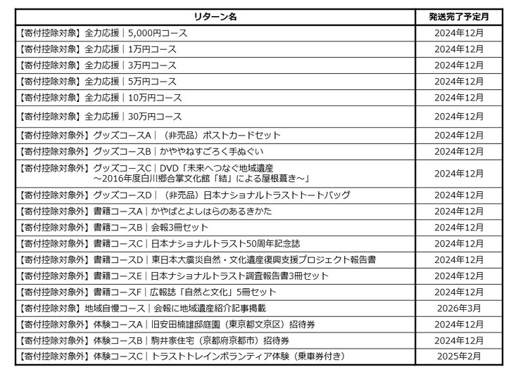 リターンの発送に関するご案内