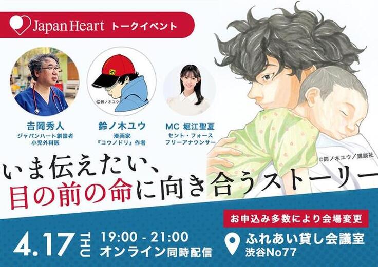 大ヒット医療マンガ作者と、途上国の医療前線に立ち続ける医師が “いのち”を語り合うトークイベント 『いま伝えたい、目の前の命に向き合うストーリー』を 4月17日(木)に開催します。