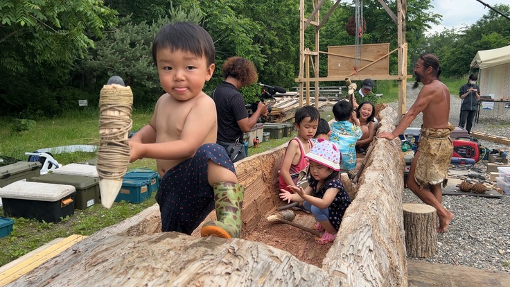 北海道から始まった丸木舟作りは、晴れの日は勿論、