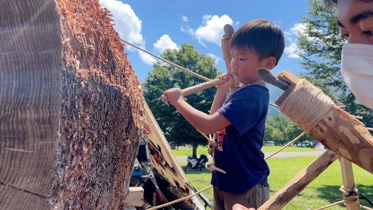石斧という道具を作ることや 推定樹齢250年以上の杉の樹さんの命を頂くことを通して、