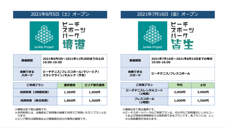 ■1ヶ月間、境港ビーチスポーツパークをご利用いただけるパスポートを進呈いたします。