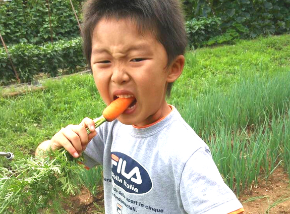 (”かわさきそだち”の人参です、収穫後そのままかぶりつくと新鮮でとてもおいしいです。)