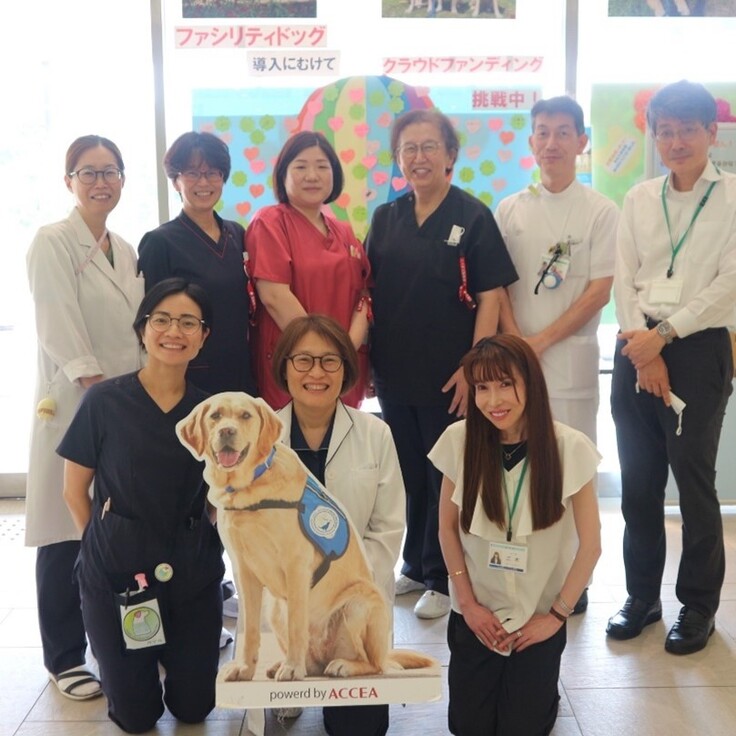 思えば、2024年4月、ファシリティドッグの導入を検討するために、院長直下に数名の小さなチームが発足しました。あれから1年4か月、この間にチームのメンバーが増え、ファシリティドッグの理解を推進する研修会やアニマルセラピーの体験等、職員がファシリティドッグを迎えるための準備や、犬の動線の確認など様々な準備を進めてまいりました。